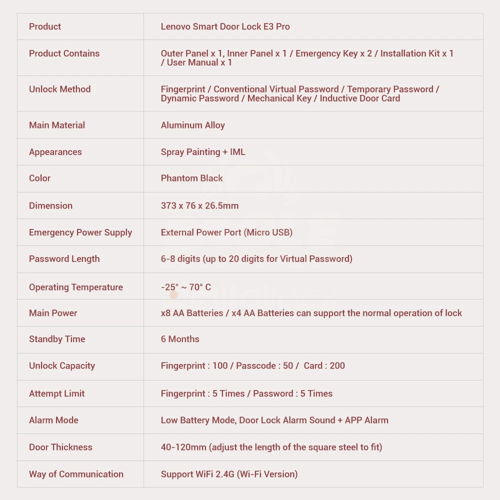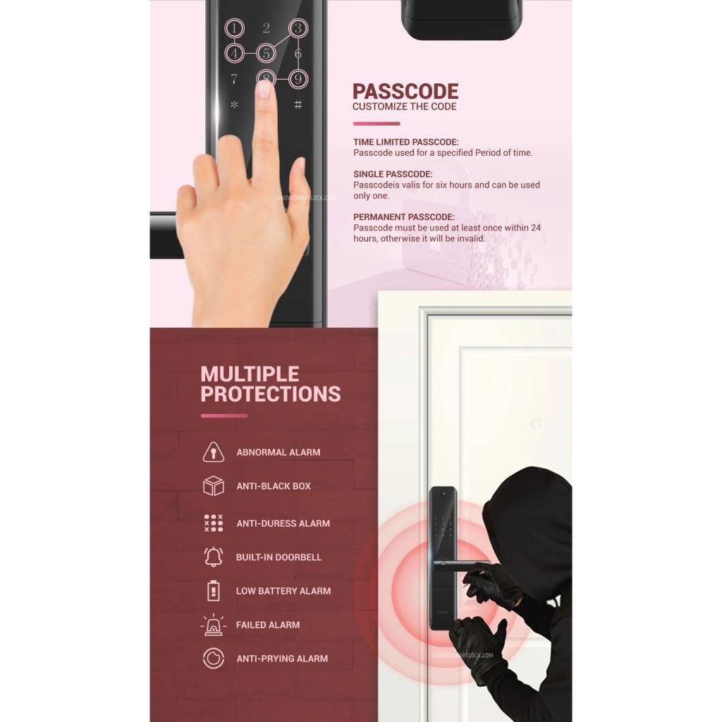 Unlock Method : Fingerprint / Temporary Password / Dynamic Password / Passcode /Mechanical Key / Card/App