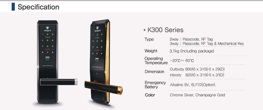 Unlock Method : Key tag, Mechanical key, PIN Code