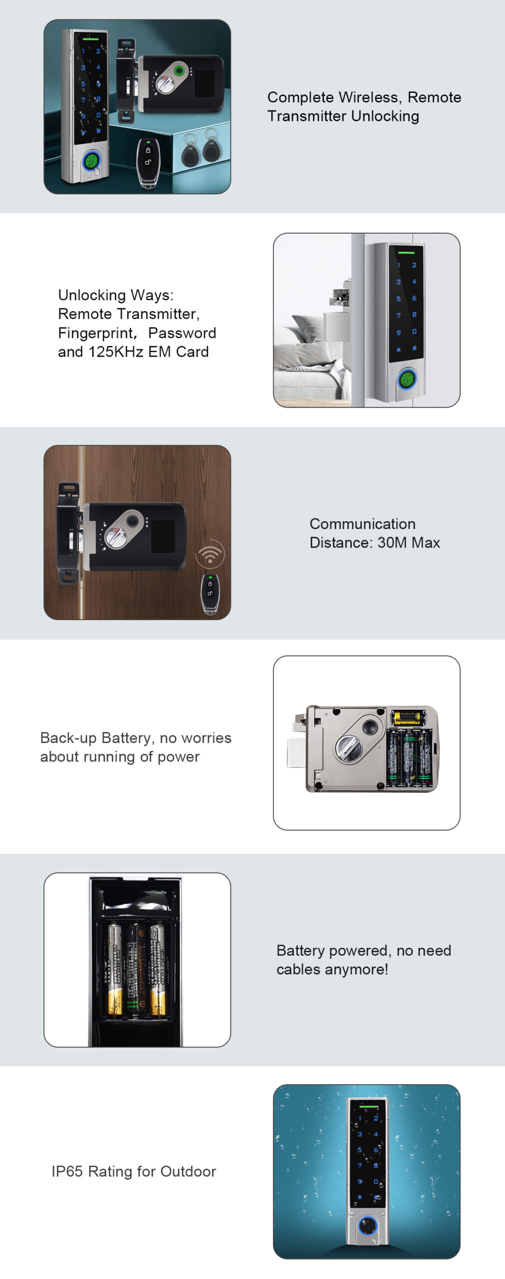> Metal design & Waterproof Fingerprint Keypad, can install outside